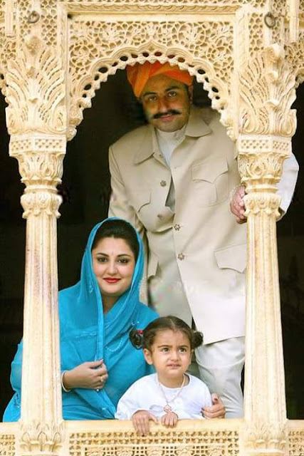 Maharawal Shri Brijraj Singh Ji Bhati of Jaisalmer with Maharani Sahib Raseshwari Rajya Laxmi Ji & younger son Maharajkumar Janmajeya Singhji